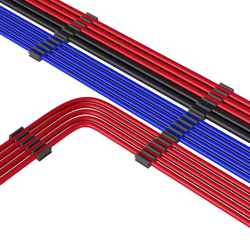 Dzięki różnym wariantom elementów możesz dopasować układ dokładnie do swoich potrzeb – od pojedynczego przewodu (np. ładowarki) po cały pakiet kabli od komputera, monitora, głośników i routera.