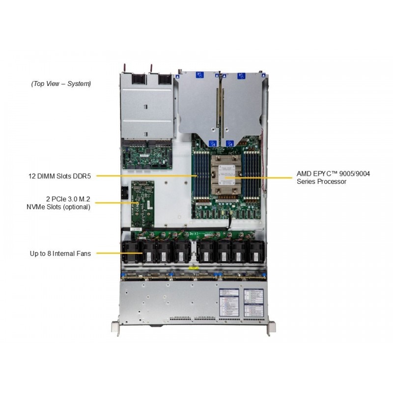 Prezentujemy innowacyjną platformę all-in-one przeznaczoną dla centrów danych w chmurze. Produkt został zaprojektowany na bazie modułowego systemu sprzętowego Data Center OCP (DC-MHS), który zapewnia elastyczną konfigurację I/O i przechowywania danych. Platforma korzysta z formy Modular DeNsity Optimized HPM (M-DNO), która gwarantuje optymalizację gęstości, a także wspiera moduł DC-SCM z OpenBMC, co zwiększa możliwości zarządzania i monitorowania systemu. Jako serce systemu zastosowano pojedyncze gniazdo procesora AMD EPYC™ z serii 9005/9004, znany z wydajności i niezawodności. Platforma obsługuje do 12 slotów DIMM DDR5 (1DPC), z prędkością do 6400MT/s, co gwarantuje szybki i efektywny transfer danych (szczegółowe informacje dostępne są w sekcji System Memory). Dodatkowo, urządzenie wyposażone jest w 2 gniazda PCIe 5.0 x16 FHHL.