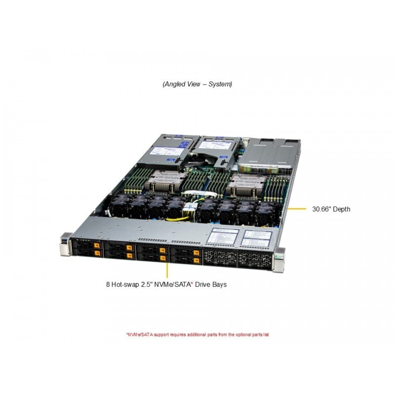 Ten wysokiej klasy serwer jest wyposażony w podwójne gniazdo procesora AMD EPYC™ serii 9005/9004, które gwarantują wyjątkową wydajność i szybkość działania. Serwer obsługuje do 24 slotów DIMM DDR5 (1DPC) z prędkością do 6400MT/s, co zapewnia efektywne i szybkie przetwarzanie danych. Dodatkowo, produkt cechuje się dużą elastycznością pod względem rozbudowy, oferując 2 sloty PCIe 5.0 x16 FHFL oraz 1 slot PCIe 5.0 x16 FHHL, które umożliwiają podłączenie dodatkowych kart rozszerzeń. Serwer posiada 1 slot na kartę sieciową AIOM (kompatybilną z OCP NIC 3.0), co pozwala na elastyczne dostosowanie opcji sieciowych do indywidualnych potrzeb. Za przechowywanie danych odpowiada 8 wymiennych zatok na dyski 2.5" NVMe/SATA.