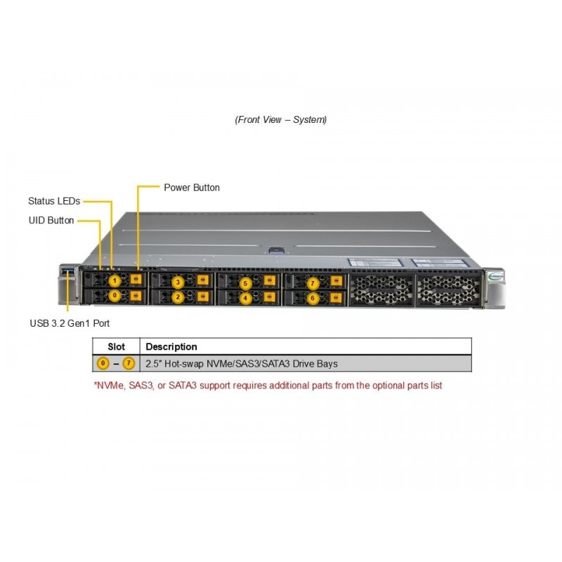 Hyper to flagowy serwer rackowy o wysokiej wydajności, zaprojektowany z myślą o skalowalnych obciążeniach chmur obliczeniowych. Wyposażony jest w pojedyncze gniazdo procesora Intel® Xeon® z serii 6900 i posiada 12 gniazd DIMM, które łącznie obsługują do 3TB pamięci. Serwer obsługuje karty rozszerzeń o podwójnej szerokości i oferuje elastyczne opcje sieciowe dzięki 1 gniazdu AIOM (kompatybilne z OCP NIC 3.0). Z łatwością radzi sobie z pracą o dużej przepustowości dzięki wsparciu dla dysków PCIe 5.0 NVMe. Na pokładzie znajduje się również TPM 2.0.