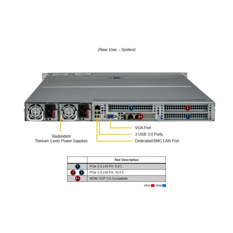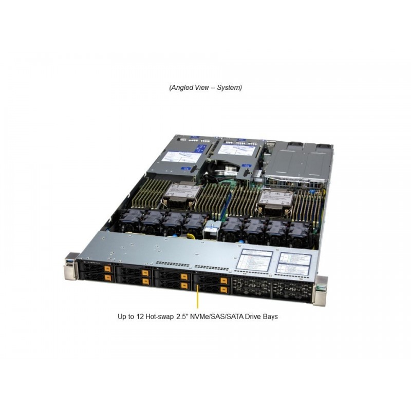 Ten zaawansowany serwer jest wyposażony w gniazdo procesora Intel® Xeon® serii 6700/6500 z rdzeniami P lub procesory serii 6700 z rdzeniami E, które dostarczają niezrównanej mocy obliczeniowej. Serwer posiada 32 sloty DIMM, które obsługują do 8TB pamięci, zapewniając wydajność i szybkość niezbędną dla najbardziej wymagających zastosowań. Dla większej elastyczności, serwer oferuje trzy sloty PCIe 5.0 x16, które obsługują karty sieciowe, pamięci masowej, GPU oraz karty akceleratorów. Dodatkowo, serwer posiada elastyczne opcje sieciowe z 1 slotem AIOM dla sieci (kompatybilne z OCP NIC 3.0). Z myślą o przechowywaniu danych, serwer jest wyposażony w 8 hot-swapowych zatok na dyski 2.5" NVMe/SATA/SAS, z opcją rozszerzenia do 4 dodatkowych wymiennych zatok na dyski 2.5" NVMe/SAS/SATA.