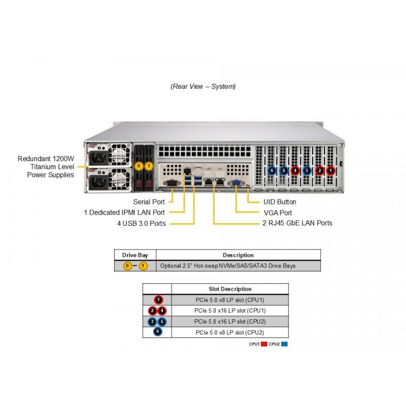 Serwer Rackmount 2U to wydajny i niezawodny sprzęt serwerowy, wyposażony w podwójne procesory Intel® Xeon® serii 6700/6500 z P-cores lub procesory serii 6700 z E-cores, o mocy do 350W TDP (chłodzone powietrzem). Serwer obsługuje do 2TB 6400MT/s ECC DDR5 RDIMM w 16 gniazdach DIMM, zapewniając szybką i efektywną pracę. Serwer wyposażony jest w 2 porty RJ45 10GbE, zapewniając szybkie i niezawodne połączenie sieciowe. Zastosowanie do 2 gniazd PCIe 5.0 x8 LP oraz 4 gniazd PCIe 5.0 x16 LP zapewnia duże możliwości rozbudowy i adaptacji do indywidualnych potrzeb użytkownika. Ponadto, serwer posiada miejsce na 4 wymienne na gorąco 3,5-calowe dyski NVMe/SAS/SATA oraz kolejne 4 wymienne na gorąco 3,5-calowe dyski SAS/SATA.